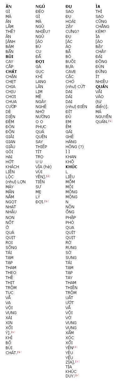...Ngô Văn Lực và 46 người trên xe [đã] trình diễn 4 chữ “ăn - ngủ - đụ - ỉa” trong “Từ điển thi X/X loại [chúng sinh]”