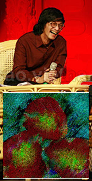 ngặt một nỗi tôi ít chữ mà bạn tôi cũng chữ ít: hắn gửi ngược cho tôi một tấm tranh digital[*] tôi làm cách nay ít lâu kèm theo một cái hình hắn ngồi cầm cái gì trong tay cười toe toét nham nhở và khen tôi một câu: ông già quả là... tiên tri