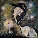 bày ra buổi tiệc khô máu nhưng người đàn bà đã sớm rời bỏ ngôi đền ướt đẫm bài ca đen không còn dấu chân buổi sớm những sợi lông căng cứng mặt trời và mặt trăng tháng chạp ngập những đêm quỳ gối che mặt[7]