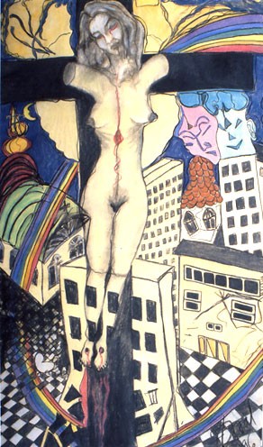 Minh hoạ: Người đàn bà trên cây thập giá, tranh sơn dầu của Zora el Barone.